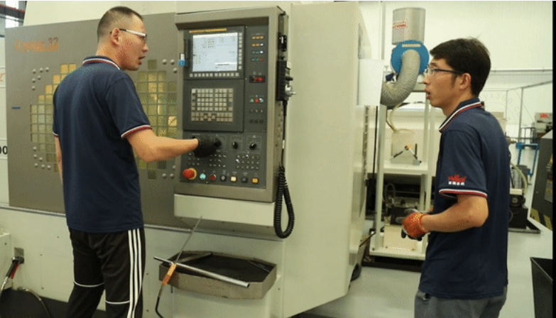但也不是每一步都很順利,當(dāng)他遇到刀具發(fā)出一聲異響以后,(這聲音小編是一點(diǎn)兒沒有分辨出)立刻關(guān)停機(jī)器,小跑著找到自己的師傅。他直接說明了問題后,正在調(diào)機(jī)的師傅立馬來到他的機(jī)器前,耐心地幫他找出問題原因,并且教他如何處理,通過重新調(diào)試刀具,快速地解決了問題,小楊也露出了笑容。