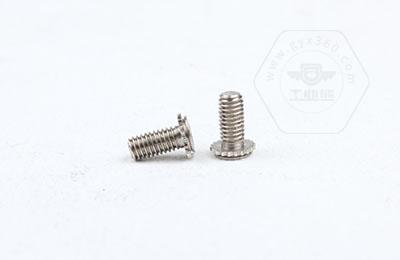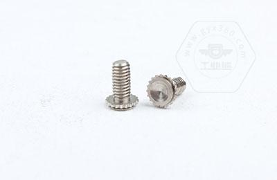 在使用過(guò)程中需在基體上開(kāi)一個(gè)小孔,將壓鉚螺釘放入孔內(nèi),采用鉚壓設(shè)備平行的均勻的在頭部平壓,因壓鉚螺釘?shù)念^部下有齒紋壓花,當(dāng)壓入后,基體在壓鉚螺釘?shù)闹車a(chǎn)生變形,和齒紋發(fā)生咬合現(xiàn)象,從而形成一個(gè)牢固的外螺紋。
