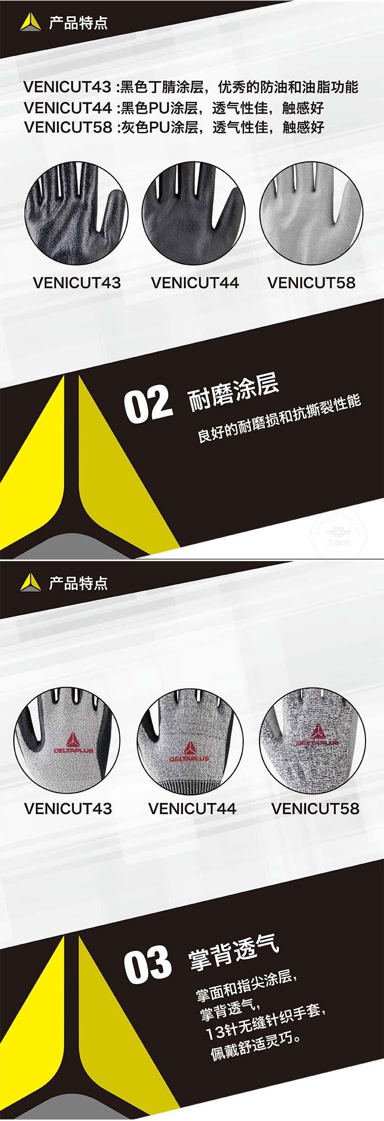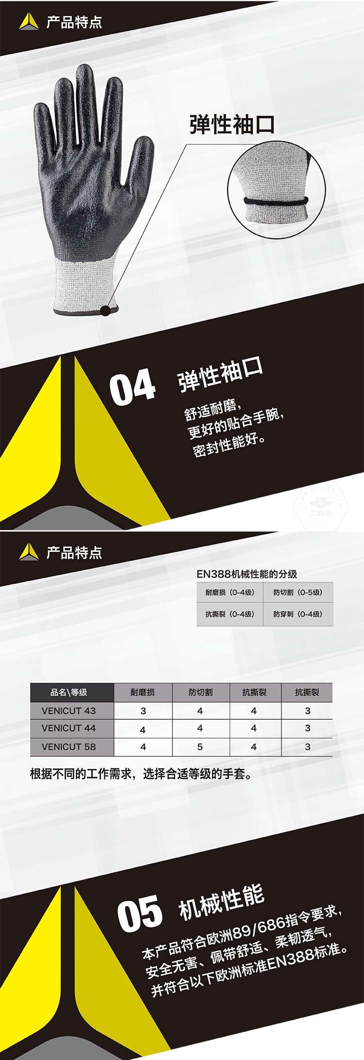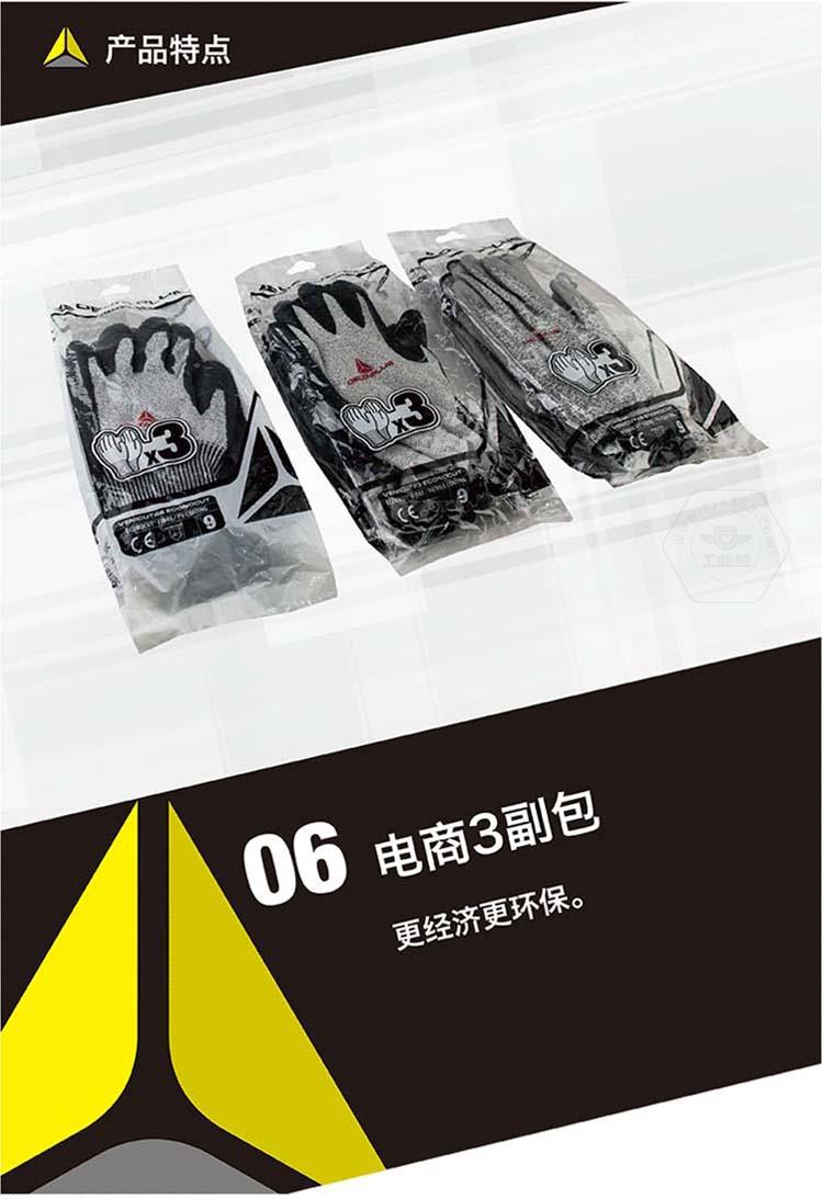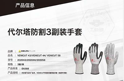 商品名稱(chēng):代爾塔 3副裝防割勞保工作手套 VENICUT43(3級(jí)耐磨4級(jí)防割)