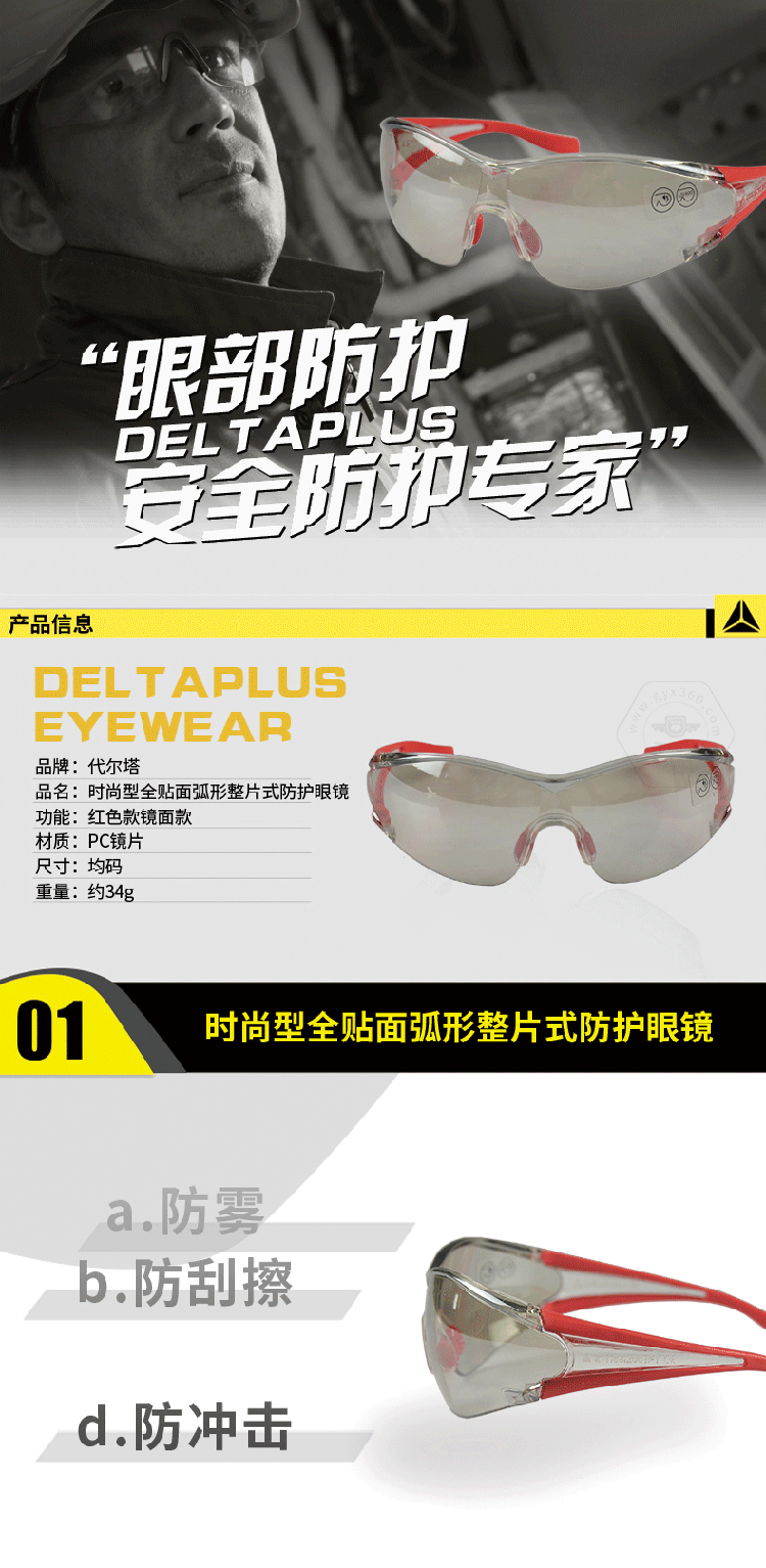 • 產(chǎn)品描述:時尚全貼面圓弧款防護眼鏡,眉墊及柔軟鼻梁架設(shè)計,確保佩戴舒.適。聚碳酸酯鏡片,有效防護沖擊危害,組個百分之99紫外線。