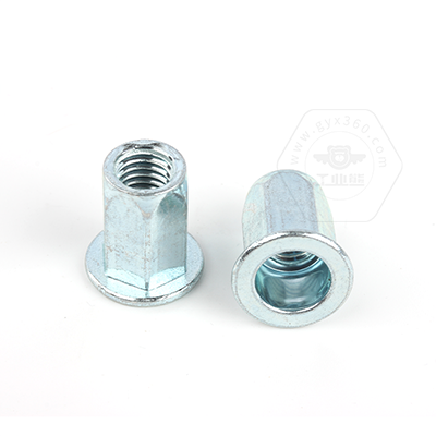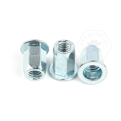 工業(yè)熊碳鋼藍白鋅平頭六角鉚螺母GB17880.5