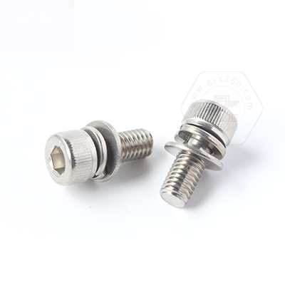 • 產(chǎn)品描述:DIN912 內(nèi)六角圓柱頭滾花帶平彈墊組合螺釘,是組合螺釘?shù)囊环N,又稱為內(nèi)六角圓柱頭組合件、內(nèi)六角杯頭連接副、內(nèi)六角杯頭三組合螺絲、圓柱頭自帶平彈墊螺釘。DIN912 內(nèi)六角圓柱頭滾花帶平彈墊組合螺釘,由內(nèi)六角圓柱頭螺釘、平墊圈和彈墊先組合后,再搓絲,形成一個組合件,組合好后墊圈能自由轉(zhuǎn)動且不會脫落。組合件使用方便,不用再另配平墊、彈墊,大大提高生產(chǎn)組裝效率。DIN912 內(nèi)六角圓柱頭滾花帶平彈墊