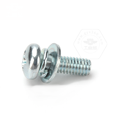 工業(yè)熊碳鋼4.8級(jí)環(huán)保藍(lán)白鋅封閉(24/72h)十字槽盤頭帶平彈墊組合螺釘GB9074.4N